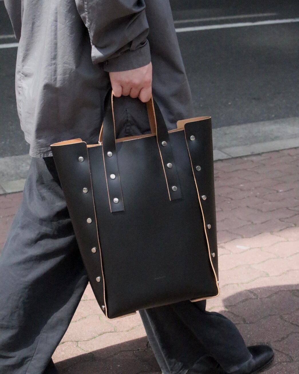 detail assemble line material: cow leather color: black, white, beige, copper orange, steel gray W33 × H35 × D10 cm 持ち手 12 cm マグネット開閉 rroommオンラインストアの商品は、実店舗でも販売しております。 画面上で在庫がある状態になっている場合でもタイミングによっては在庫切れの場合もございます。予めご了承下さい。